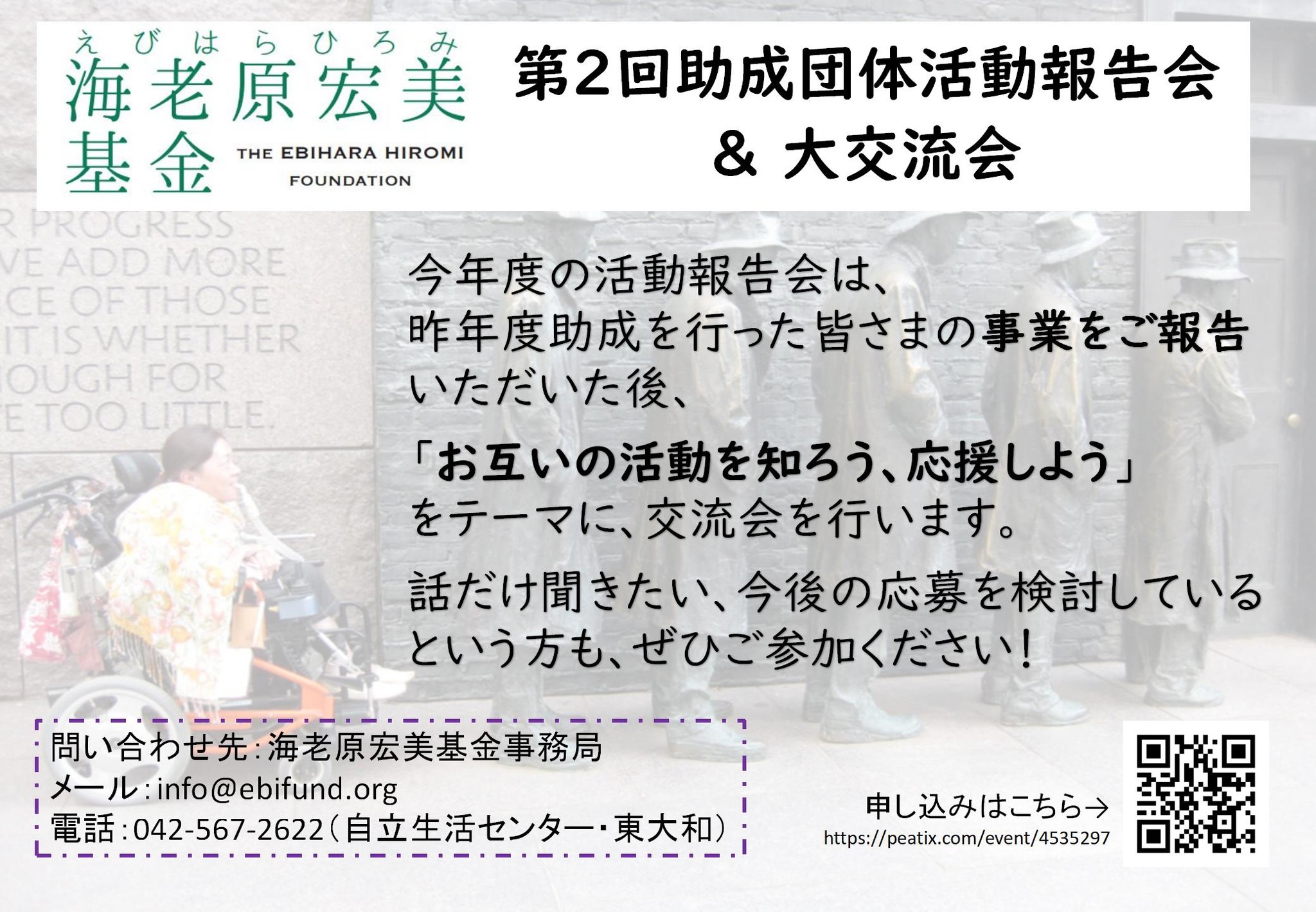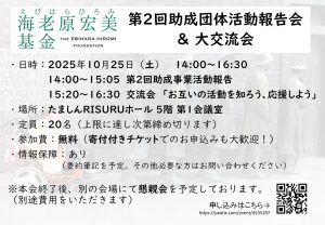 海老原宏美基金主催で10月25日に「助成報告会&大交流会」があります。