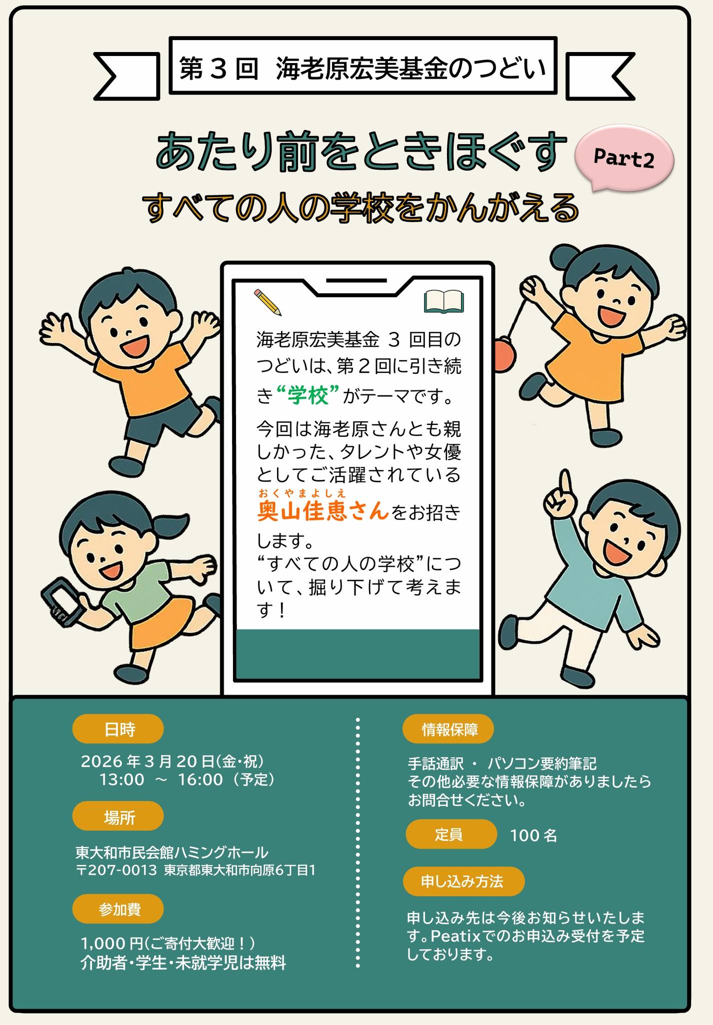 海老原宏美基金3回目のつどいは、第2回に引き続き“学校”がテーマです。